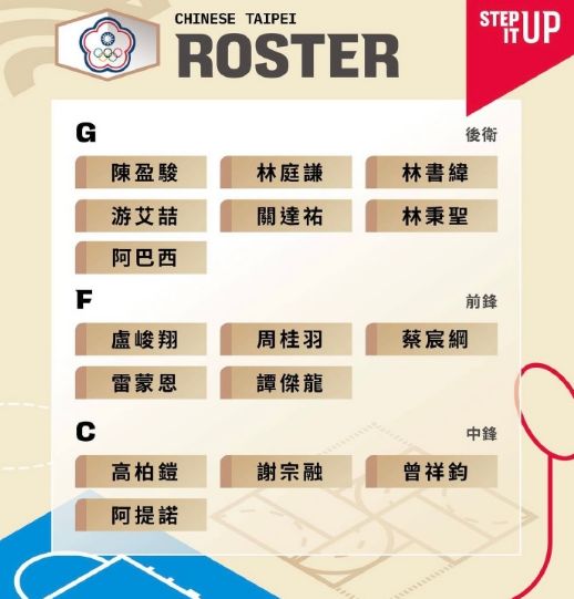 在中国台北男篮的阵容当中,最引人瞩目的自然是效力于北京男篮的陈盈骏,以及效力于天津男篮的林庭谦,他们均是CBA顶薪球员,也将是球队的核心球员。